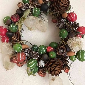 オキナワスズメウリのリース やっと赤く色付いてきました!