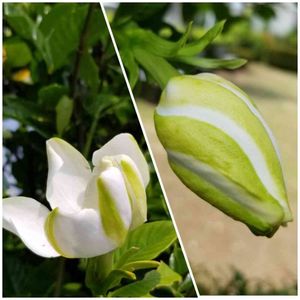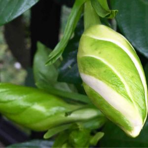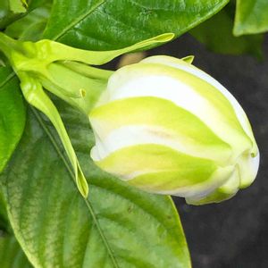 Elmarくんと朝散歩途中(╹◡╹) クチナシは甘い香りがしますが、ジャスミンほど強く香りませんネ この蕾は、メロンミルクのソフトクリーム見たい(๑>◡<๑)