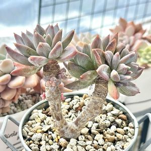 見えますか?このウォーターマーク😍 いいのに出会ってしまった❣️ パキベリアって初めて聞く名前です🤔 母と一緒に園芸家さんに買いに行って、 「置き場所ないな〜」 と先に投稿したピンクプリティとこれ買おうかと迷っていたら 「作ればいいっしょ!買いなさ〜い」 と😅 買ってよかった💕でもさらに棚の物整理しないと💦