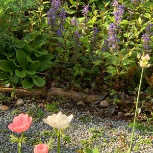 今日の庭から ピンクの忘れな草がところどころに 今年は、ブルーの大株が見つかりません