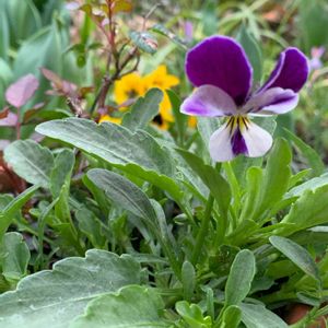 ちょっとうつむき すねたような どうした? そこは、やっぱり狭いかな バラと一緒のビオラ