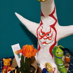 ホームセンターからオレンジ色🧡の「ヒボタン」をお迎えしました。🏵️🌵 夢太郎と愉快な仲間達で歓迎会です。🌞🐛🦀🐇🧸🐦️😄🤗✌️