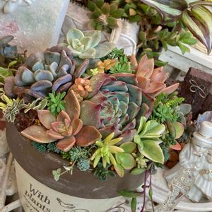 毎月13日と14日は葉挿しの日🏷 に参加します💓 今日はポカポカ天気だったので 気晴らしにインスタでお迎えした 4号鉢、、、デカイ鉢に寄せ植え やっちゃいました😅 うちの葉挿しが少し成長したコを チマチマ、、、はい!ブサイクな 仕上がりです💧 久しぶりの土いじりで 気晴らしの1日でした☺️💞 そして 久しぶりの水やり 旦那様にやっていただきました🤗
