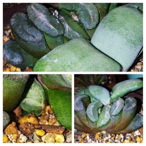 こんばんは😃🌃 ガステリア 王扇福娘 2年前ヤフオクからお迎え(*゜▽゜)_□🌱💞 大きくなったのですが 間に子株‼️ ヾ(@゜▽゜@)ノ💞 秋になるまで 窮屈だけど我慢してね(ノ_・。)💦