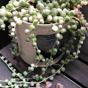 ネツクレス・・コンビ🎵です~~~ ドルフィン🐬&斑入りグリネさん ワサワサ・・タラ~ン 賑やかでいいね❤ 1斗升&木鍋蓋組み合わせ多肉棚からの撮影でした😁 七福神狸も飛び入り参加してます😃