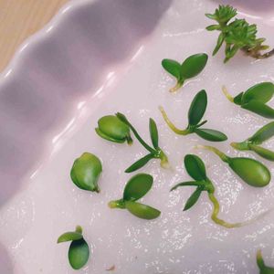 スーパーで購入下レモン🍋の種の発芽進んでるー🥰 そろそろ土に植えてあげないとかなあと思うのですが、調べたら土は排水性の良い土を好むって書いてるけど、今家にある土は多肉用の土のみ笑。 やっぱりダメでしょうか?🤣