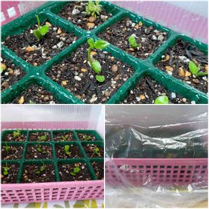 仕事が忙しくなり💦 投稿出来ない間に だいぶん育ちました😊 そろそろ 土に移そうかな もう寒くなって来たので 外では枯れてしまいますね 🏠の中でもラップを ふわ〜っとかけて なんちゃって温室🤗 乾燥防止にもなっていいみたいです