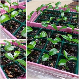1ヶ月ぶりの投稿💦 育ってます‼️ 28個の種中、26が育ってます🤣 まだまだ先が長いですが… このままでは🏠の中レモンの木だらけです(笑)