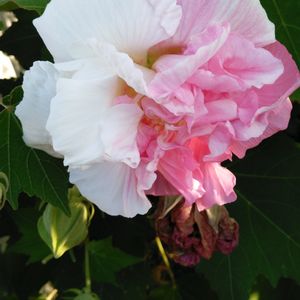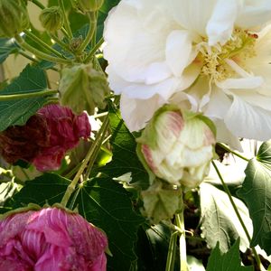 花の色が変化します。 酔芙蓉の花です。朝と夕方近くの花姿です。