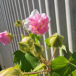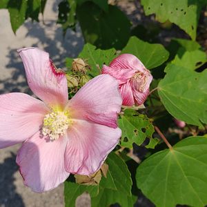 おはようございます☺ 海辺の植物シリーズ🌊番外編 スイフヨウ🌸🌿 酔芙蓉 展望台下に咲いてました🙆 咲き終わりで萎んだピンク💗の姿も美しかったです🤭 皆にみられて恥ずかしがってるようです😂