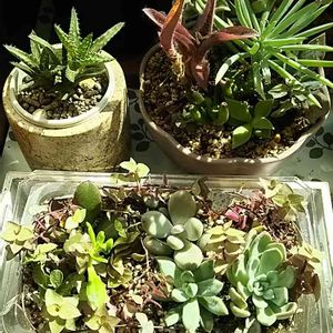水分補給後の寄せ植え🍀🍀 外の簡易ビニール温室のおかげで凍らずひとふゆ過ごした寄せ植え🍀🍀です。 復活したようで良かった😊