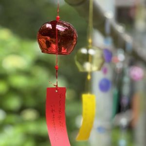 新宿区 法輪寺の風鈴 「風鈴を 吊る海よりの 広き風」山口誓子 吊るされている 色あざやかな風鈴の音色が 風にのって暫しの涼を感じ癒されました🐢 ウミガメには陸の猛暑は辛く 海からの風に救われます🦑