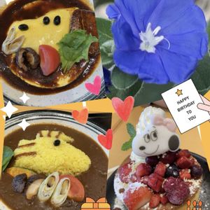 アメリカンブルー💙やっといくつか咲き始めました💧2枚目は花が増えず寂しいので風鈴ピックをさしてます🎐😁🍉 ㊗️8月10日はSNOOPYのお誕生日との事❣️お誕生日おめでとう🎉🎉🎉 先日食べた可愛い過ぎるランチ😋 SNOOPY ハンバーグオムライス✨ ウッドストック 和風カレー🍛 ベル 森の恵みのパンケーキ🥞 🏷️チームスヌー参加させてください☺️