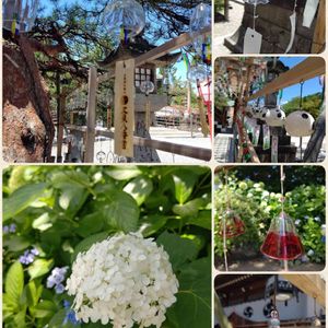 五泉八幡宮 様々な風鈴がたくさん飾られていて… キレイで✨風が吹くと賑やかで🤭🎶 木陰には紫陽花が咲いてました⤴️ (7/13(水))