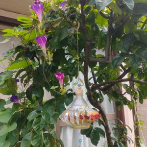 アサガオが縦に並んでると可愛らしいと思ったら、そばに手作り(?)風鈴が🥰 絵になる風景でした(笑)