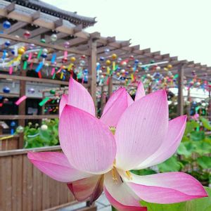 風鈴とストロベリームーン わが家の玄関に吊るしている 蓮の花模様の風鈴🎐 そして ピンク色のお月様が 綺麗に見えました。💞 お休みなさい。😴