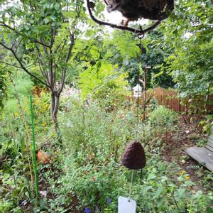 雨です。 荒れてる庭が 片付きません 風鈴のしのぶも暑さで葉があまり無くなりまして、 いつしまう❔