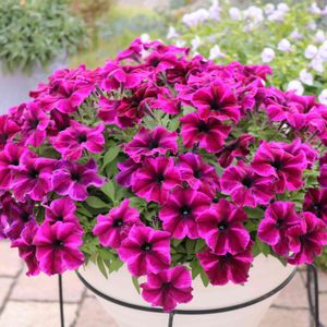 夏に向けて 苗を数個 ゲット😆 今回は 単品で白い鉢に植えました。💕 配置換えを楽しもうかとw ナイトスカイは 特に個性的😄 私には ナイトスカイというか宇宙にみえます♬ ほかの花たちと合わせるのは難しそうだけど なんだか気に入ってしまいました🥰