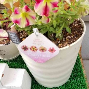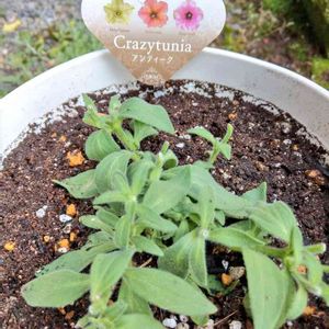植え付けました 水切れしてたのであわてて😅 サフィニアを植えた鉢8号くらいかと思ってたら測ったら9号でした。 クレイジーチュニアは7号にしてみた。
