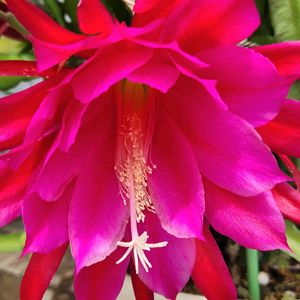 クジャクサボテン[孔雀サボテン] サボテン科 鉢植えで華やかに咲いていました 🏷️真っ赤な火曜日 参加させてください
