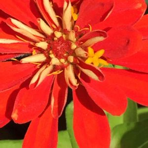 小さな、赤いジニアが🌺 花ひらきました。 黄色のシベをひとつ💛 伴って 可愛い子😍