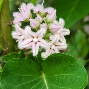 ガガイモ キョウチクトウ科ガガイモ属 刈り取られていたピンクのガガイモの蔓が伸びてやっと花が咲きました。 在来種で、北海道~九州に分布 🏷木曜モフモフ 🏷木曜日は桃色 参加させてください