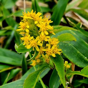 ミヤマアキノキリンソウ [深山秋の麒麟草] (コガネギク) キク科アキノキリンソウ属 剣山にて 在来種で、北海道と本州の中部以北に分布とありますが、剣山でも毎年山頂付近の笹原で咲いています