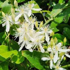センニンソウ[仙人草] キンポウゲ科センニンソウ属 河川敷にやっと咲きだしました。 他の木に葛と一緒に絡んでいます。 在来種で、全国に分布