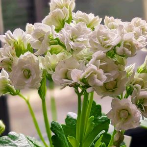 やっと、気温が下がり~風も気持ちよいです☺️🎶 暑さ寒さもお彼岸まで〜🍂 💚窓辺のカランコエ クィーンローズ ホワイト 一つのお花が一月咲き続けて〜🎶 ❤🤍💕