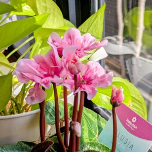 柔らかな日が差し込んで🎶🍂 小さな🩷シクラメン お迎えしました😍 💗イリュージア ピンク ラテ オランダ発の上向き花弁が一月以上持ちの良さがあるとか!?!楽しみデス🩷💚🩷