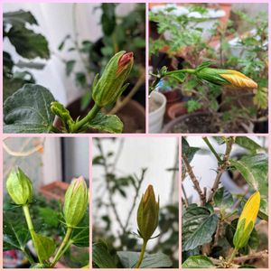 ハイビスカス🌺ミセスユミ🧡❤️ 🌺アドニスピンク💓イエロー💛 🌺イエロービーナス💛 5種類の蕾が膨らんできました(*^_^*)