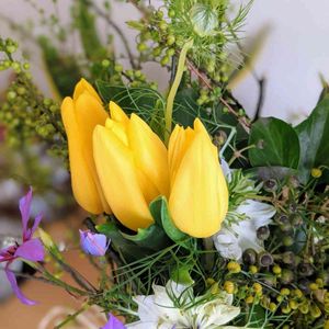 生花のアレンジ💐 チューリップ🌷の蕾が2輪💛
