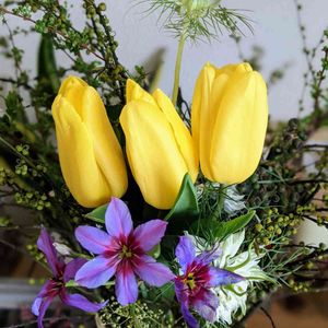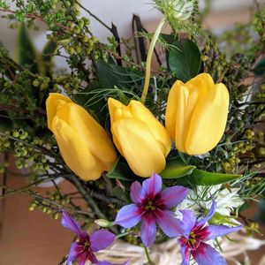 昨日の生花のアレンジ💐 チューリップ🌷3輪💛