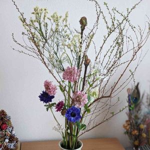 枝物を使ったアレンジ💐 アネモネ💜 スカビオサ💓オーニソガラム🤍