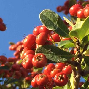 散歩にて ウメモドキの 実が朝日を浴びて 光っていました❤️