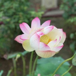 近所のバラ園さん 蓮の花が咲いています╰(*´︶`*)╯♡ 睡蓮鉢で育てていました。 雨の雫が綺麗です💧 🏷0の付く日は雨粒の日に参加します🎶