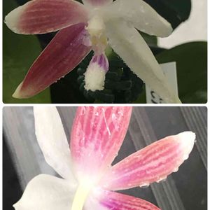 ファレノプシス テトラスピスC1 5枚の花弁のうち3枚が赤、2枚が白のようです。 美味しそうな牛肉みたい〜🤤🤤🤤