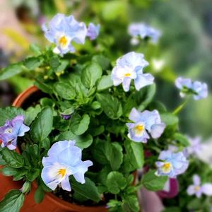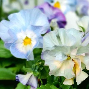 パンジー シエルブリエ もう一株お迎えしてました🎶 以前投稿したのは奥の淡い ブルーの子💙 手前の淡いブルーグリーンの 子が最近になり色が濃くなり 素敵なカラーになってきました😊