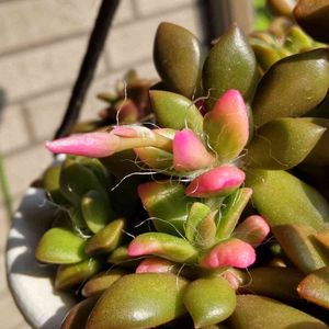 こんにちは😃💐💐 今日の私の一枚は多肉植物の桜吹雪の蕾さんです。 (((o(*゚▽゚*)o)))💗💗 🏷️ 金曜日に蕾たち ◎ アナカンプセロス属 ‘桜吹雪’とは? 南アフリカ原産の耐寒性・耐暑性に優れた丈夫な多肉植物です。年中ピンクが残り、ピンクの葉と新芽の緑が初々しく可愛らしいですよね。ふわふわとした白い毛が生えるのも特徴です。 ずっと長い事桜吹雪を育てていますが、つぼみができたのは初めてです🤗♡♡ 花が咲くのは15時位に1時間くらいで16時には萎んでしまうそうです😅 可愛い花が咲くのを見たいと思っています。 ╰(*´︶`*)╯♡ 今日も穏やかな一日になりますように。 *・゜゚・*:.。..。.:*・'(*゚▽゚*)'・*:.。. .。.:*・゜゚・*
