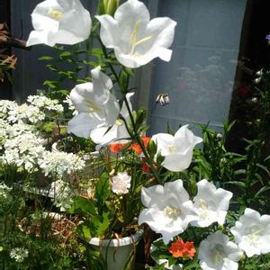 おはようございます!(╹◡╹) 水遣り時間にささっと撮影(^^) 本当は白花と桔梗色の出来れば 半々くらいで撮りたいところ でしたが、白花が主役の写真 でした😊