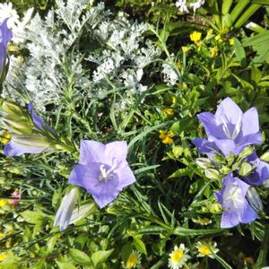 ❝ カンパニュラ・パーシフォリア(桃葉キキョウ) ❞ こんにちは! ❛STAY HOME❜ 気を緩めずに! 咲き揃って来ました! 斜め上から撮っています。 雨の合間の曇り空での撮影は植物の種類を選ぶようで、この清楚な感じの青い花にしました。 今週は気温も下がり、残りの薔薇やこれから咲くはずの山野草も蕾も閉じたままです。 ネタが少ない時は自然体で投稿は昨日のように休みます。ある意味で皆さんの写真閲覧だけでのんびりできます。 カンパニュラ・パーシフォリアは昨年、苗を2個のポット苗でお迎えして、マイガーデンのシンボルツリーのサークル花壇で育っています。 昨年は花が咲きませんでした。 写真の左側に見えるのは、サークル花壇の端の方に広がるカンパニュラ・アルペンブルーの花々です。 シンボルツリーのカツラの木は株立ちで現在高さ5~6mですが、水分をより欲しがる性質の木の様で、ツリーサークル花壇の水分を独り占めするかのように真冬以外は水遣りしないでいると半日でもカラカラにしてしまいます。 ですから、雨が降らない日は、朝に一度は最低限、出来れば夕方にもう一度、水遣りをしなければなりません。 ツリーサークルにはカンパニュラ・パーシフォリアのほかに、ホタルブクロ4種、ヤマオダマキ、西洋カタクリ、ソバナ、カンパニュラ・アルペンブルー、プリムラ、ツル薔薇のピエール・ドゥ・ロンサール他が同居しています。 水遣りを怠るとカツラの木以外の大部分の植物は枯れて仕舞います。 植物は乾燥と湿潤の繰り返しで根も育つようですので、その点は人工的に管理することで良い環境にはなるのでしょう。 このサークル花壇では根腐れは無縁です。ナメクジにも無縁です。 実際の色が写しだせるように撮影時にホワイトバランス調整等いろんな工夫を撮影設定で試みています。 撮影日:2020年5月21日 午後 100mm(=実効)のマクロレンズでの撮影 絞りは解放値F/2.8