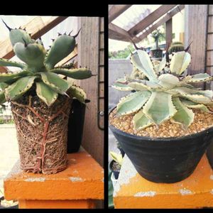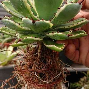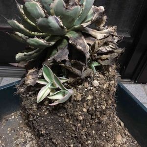 スパルタしまくりアガベ吉祥冠錦💦 根が1年でパンパンに💦 アガベ強い訳だわ💧今から崩します✨