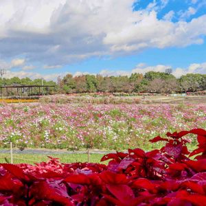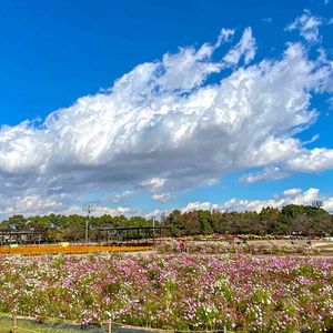 広角レンズを使って撮影📷した、横溝屋敷のコスモスの花🏵🌼🌸の写真です。 Canon EOS 6D Mark ll EF24mm F2.8 IS USM A F8 WB晴☀️
