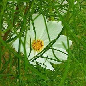 夏なのにもう咲いていた真っ白な秋桜 奥の方で凛とした花姿