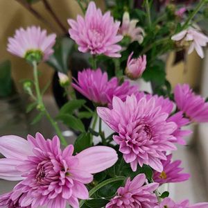 こんにちは👋😃 ピンクのスプレーマム 可愛い花が咲いてます。 切り花にしました。