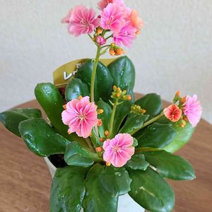 おはようございます。 南側の棚で、養生していたレウィシア。 チェックが、行き届かず淡いオレンジ色の花が、咲いていました。