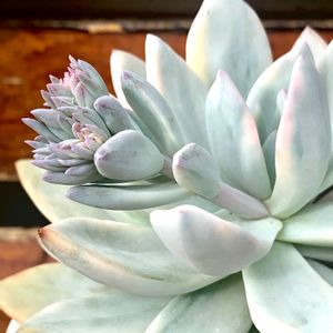 ✤錦の日✤ 午前中の多肉植物普及活動から帰宅しました (・ω・)ゞ いやー楽しかった💚 と、思う。。と思いたい(笑) 楽しかったのは私だけ? にならなければいいが。。。(笑) みんなの反応は「いゃーん🥰かわいいー♥️」 でした❣️ 持っていった苗はみーんなお持ち帰りしてもらいました🌱 SNSで繋がってるので、ちょいちょい気にして フォローしていこうと思ってます 季節的に梅雨&真夏が待ってるからね💦 秋に寄せ植え体験教室が開けたらいいねって 話したので、また苗を増やさなきゃ(笑) 私、課題があると燃えるタイプです🔥🔥🔥 さて、本日はみらいさん主催の錦の日🌟 選ばれし多肉は「霜の朝錦」さん💙 我が家の青い多肉代表選手です✨ この株は長野の錦玉園さんからお迎えしたコ 薄い水色の葉っぱにほんのりとピンクの斑入りが とっても美人さんです💙 そして、ブーケような花芽までついた💐✨ 斑入り種は暑さに弱いので株を守るために 明日花芽はカットするよ✂️ 今年は反対側から子株も産んでくれてる💙 そんなに頑張らなくってもいいんだよ 君はそこで美しくたたずんでいておくれ✨