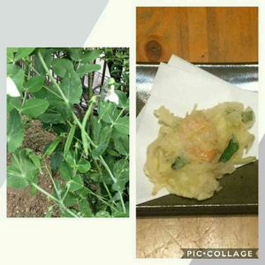 庭で育ったエンドウを 海老、新たまねぎと 合わせてかき揚げに してみました(^^) 春の恵みですね〜