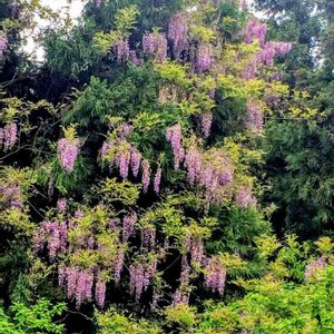 神奈川県小田原市の山の中 で山藤が滝のように 咲いています 仕事に向かう為に、毎日 山越えしています(;・∀・) イノシシ🐗や野生動物がいる 山です
