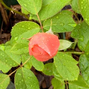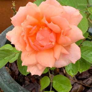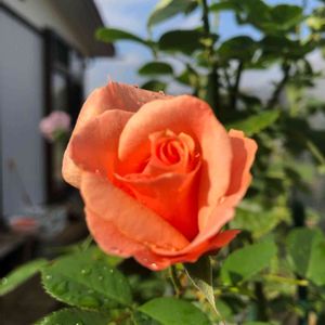 今年一番の開花🌹 昨年秋にお迎えした アプリコットキャンディ 雨に濡れてシットリもいいね(^^)